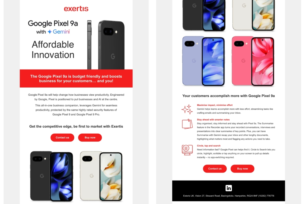 Since becoming Exertis’s outsourced strategic, creative, and marketing partner at the start of the year, we’ve driven impressive ROI across all vendors, with a Google email campaign selling 347 Google Pixel 9a devices on its first day.